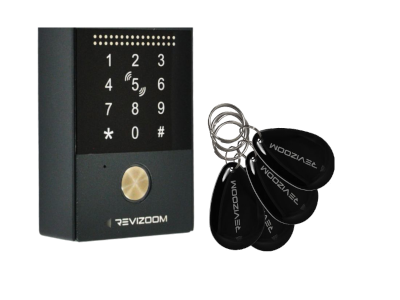 Panel oferuje również możliwość dostępu do posesji za pomocą czytnika RFID wykorzystując w tym celu breloki lub karty działające w standardzie Mifare Classic. W zestawie dostarczane są 4 breloki, jednak urządzenie może zostać rozbudowane o obsługę kolejnych aż do maksymalnej liczby wynoszącej 200 szt. Dostępna opcja powiązania klawiatury oraz czytnika oferuje zwiększenie bezpieczeństwa. W takim układzie wymagana będzie dwustopniowa weryfikacja w celu uzyskania dostępu do posesji czyli wpisanie kodu na klawiaturze oraz odczyt z zaprogramowanego breloka lub karty.